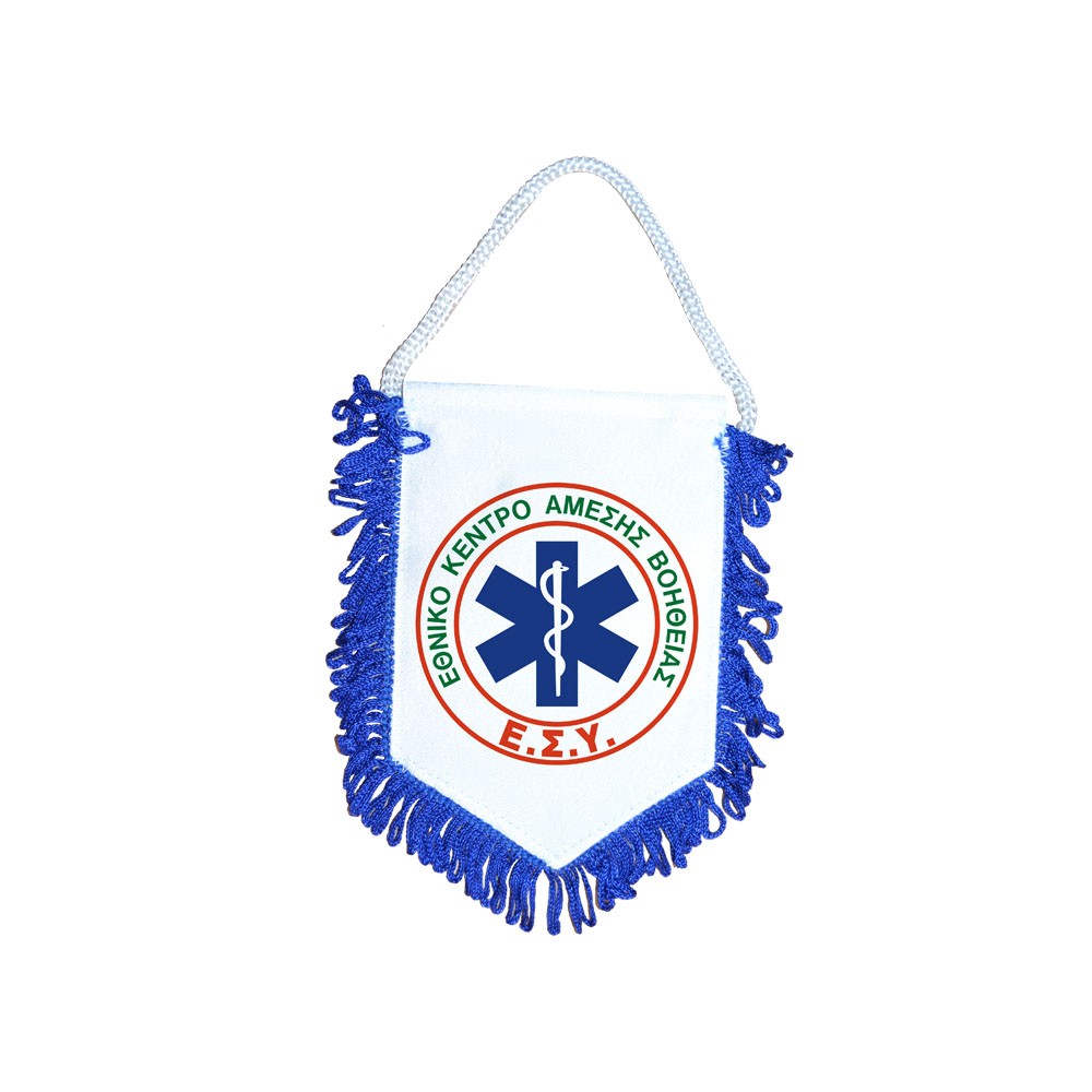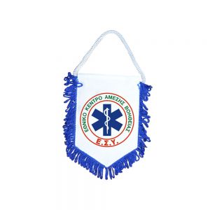 Λάβαρο διαστάσεων 10x10 cm από σατέν, τυπωμένο με ψηφιακή αμετάβλητη εκτύπωση στη μια όψη (εκτύπωση και στις δυο όψεις 3,50?) και χοντρό κρόσσι ραμμένο περιμετρικά του λαβάρου.