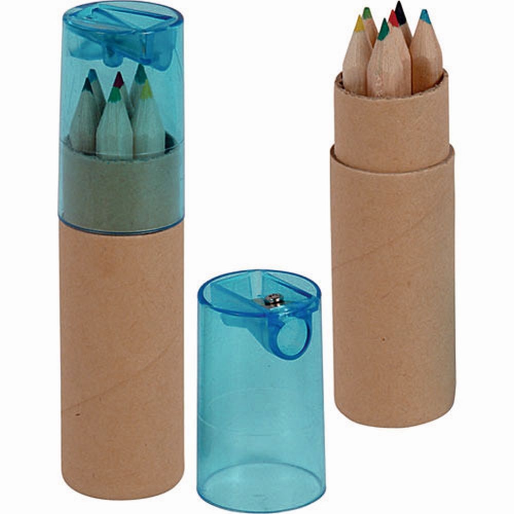 Θήκη με 6 ξυλομπογιές χρωματιστές και διάφανο καπάκι με ξύστρα.