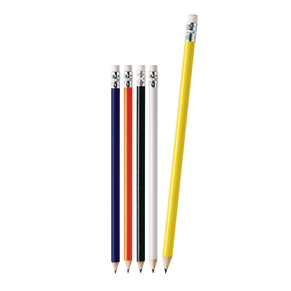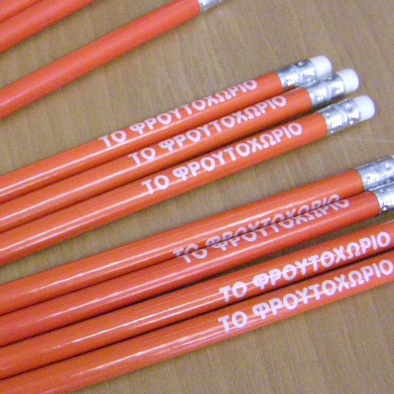 Μολύβι ξύλινο με γόμα. Διάσταση Αντικειμένου: 19 x 0,7 cm Χώρος Εκτύπωσης: 5 x 0,4 cm Τρόπος Εκτύπωσης: Μεταξοτυπία Χρώματα: Μπλε, κόκκινο, μαύρο, λευκό, κίτρινο