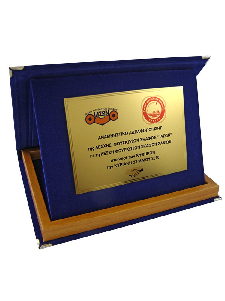 Κασετίνα βελούδινη με ξύλινο πλαίσιο & μεταλλική πλακέτα οριζόντια και κάθετη