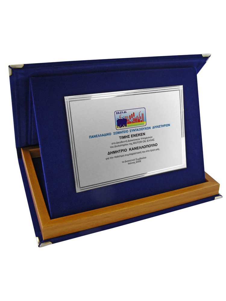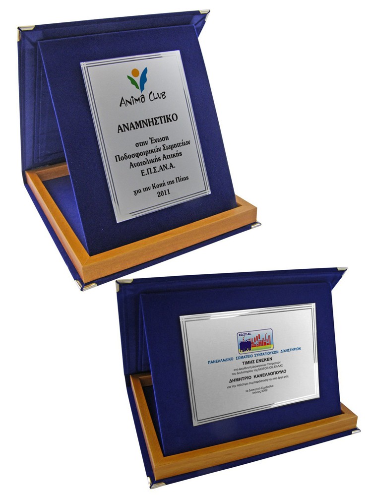 Κασετίνα βελούδινη με ξύλινο πλαίσιο & μεταλλική πλακέτα οριζόντια και κάθετη