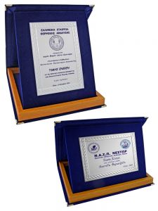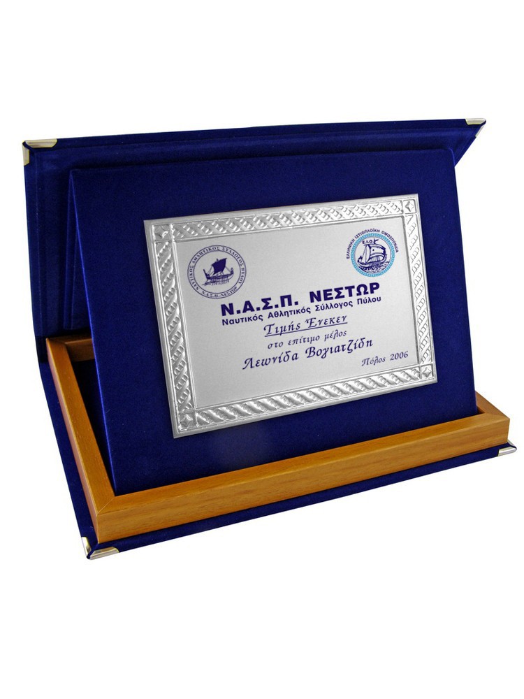 Κασετίνα βελούδινη με ξύλινο πλαίσιο & μεταλλική πλακέτα οριζόντια και κάθετη