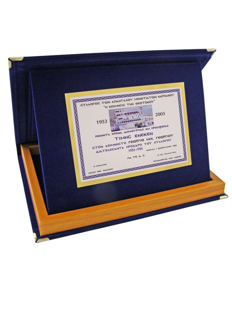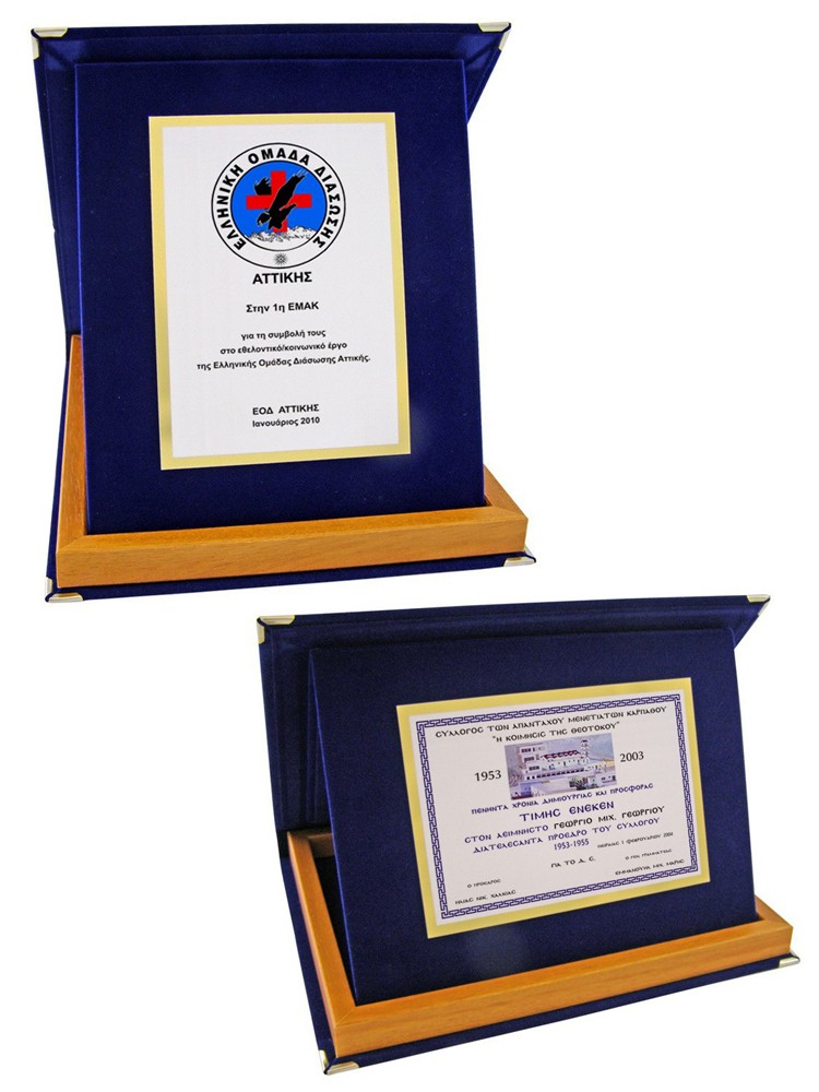 Κασετίνα βελούδινη με ξύλινο πλαίσιο & μεταλλική πλακέτα οριζόντια και κάθετη
