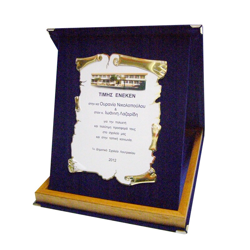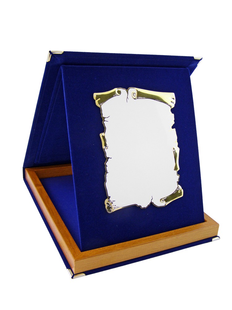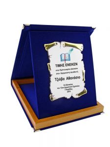 Κασετίνα βελούδινη με ξύλινο πλαίσιο & μεταλλική πλακέτα κάθετη