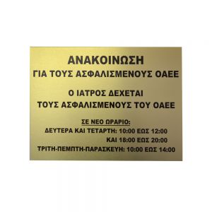 Ταμπέλα Ιατρείου μεταλλική με εκτύπωση τετραχρωμίας στη διάσταση, που εσείς επιθυμείτε.