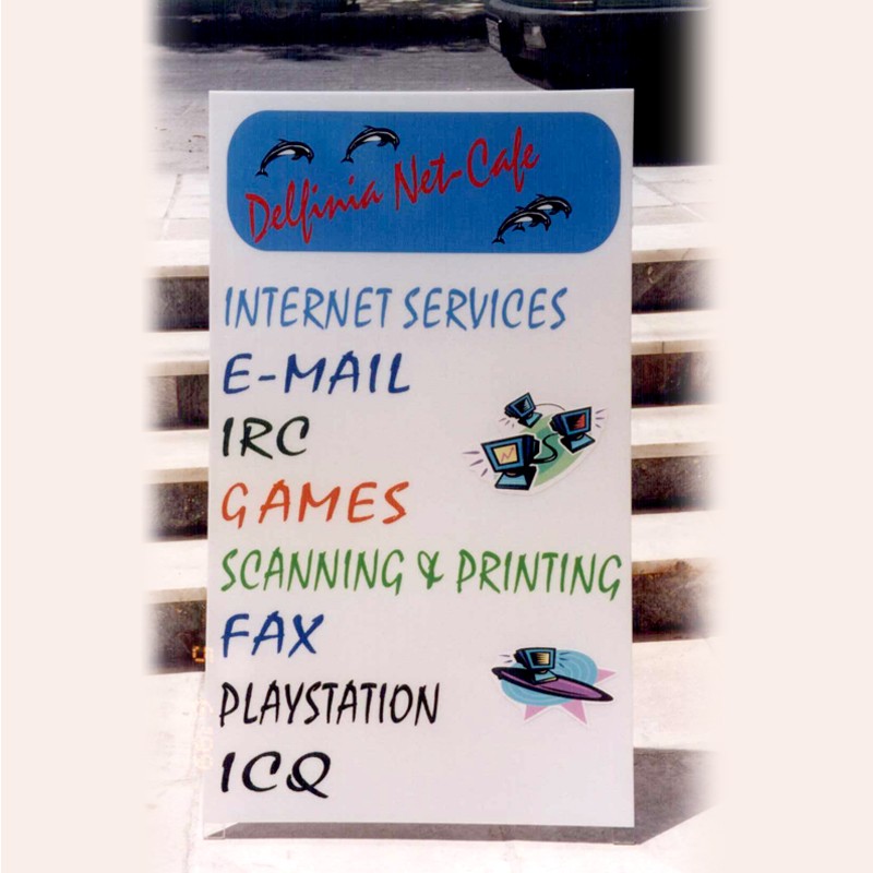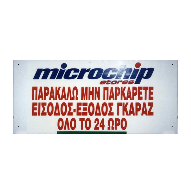 Ταμπέλα από plexiglass με κομμένα αυτοκόλλητα γράμματα βινυλίου